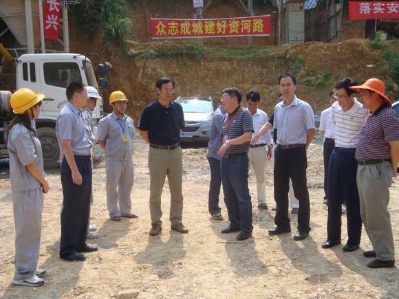 7月20日,自治区交通运输厅副厅长梁毅亲临由长兴公司负责施工的资源至河口二级公路工程№5合同段、№8合同段进行调研。厅基建处处长姜永春,自治区公路局局长李程、副局长冯永平,桂林市公路局党委书记谭建伟、局长张克明和副局长粟卫国,资源县副县长谢永功,建设办副主任王晓龙、总监办总监蒋连华以及长兴公司总经理黄为新陪同调研。