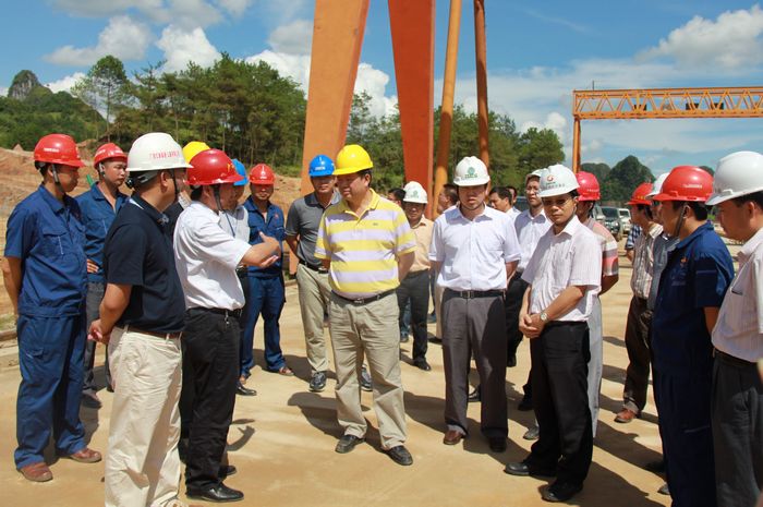 2011年8月3日下午,区交通运输厅厅长潘巍一行莅临由广西壮族自治区公路桥梁工程总公司承建的靖那1标施工现场视察工作。
