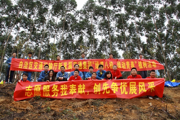 来自广西交通科学研究院、广西路桥建设有限公司等直属单位的团员青年及志愿者代表23人参加活动,参与植树的团员青年积极弘扬青年志愿者精神,用实际行动,把创先争优活动与“绿满八桂,绿动青春”活动有机结合,激发了广大青年员工奉献爱心、勇当先锋的激情与热情。在团员青年们的共同努力下,集团公司认种的100余株树苗挺拔地在林场“安了家”。