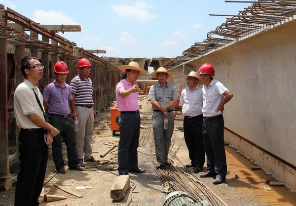 5月9日,集团公司副总经理刘明洪莅临广西航务工程处崇左市工业区公路№2标检查指导工作。刘明洪副总经理重点视察了路面水泥稳定碎石底基层试验段的铺设和桥梁预制场预制箱梁情况,参观过程中听取了项目施工情况汇报,了解目前施工存在的困难,以及下一步的施工计划部署情况。