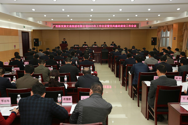 春回大地迎新气,一元复始开新局。3月6日上午,集团公司在邕召开了2015年工作暨党风廉政建设工作会议。自治区国资委副巡视员杨朝林、自治区交通运输厅总工程师王劼耘、自治区国有企业监事会主席韦增忠出席了会议。集团公司领导班子、监事会,直属各单位领导班子,集团公司总部中层领导干部等共98人参加了会议。会议由集团公司总经理李定伦主持。