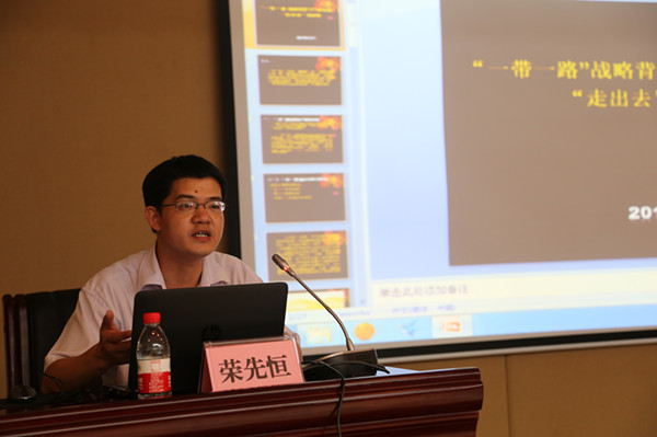 荣博士从战略内涵、历史缘由、时代背景、框架思路等方面详细解读和分析了“一带一路”战略构想,并结合广西发展优势及集团公司发展需要进行了针对性、科学性、前瞻性地辅导。荣博士指出,当前“一带一路”战略的实施,为中国企业“走出去”创造出了难得的历史机遇,是中国未来10年的重大政策红利,必将加速中国企业“走出去”步伐。新发展集团作为广西的国有大型企业,要善于把握新的经济发展形势,主动融入“一带一路”国家战略,抓住“一带一路”建设新重点,利用广西的先行合作平台优势,积极与其他企业合作“走出去”,以海陆互通重点通道工程为突破,建立灵活机制,多元化投资,在“一带一路”大联通网络建设中有所作为。