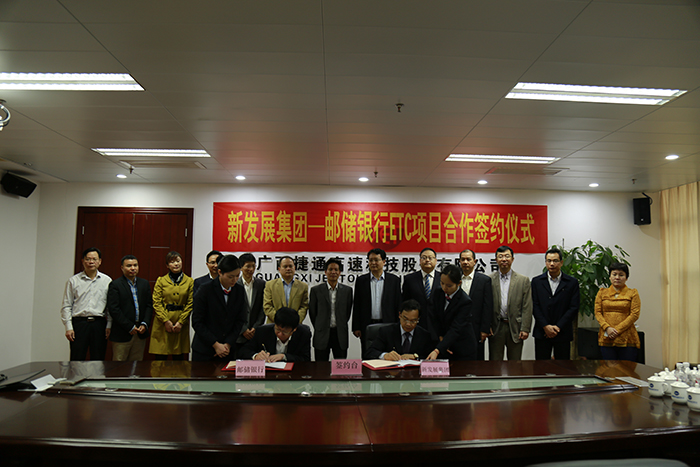 此次ETC项目合作签约仪式的圆满完成,标志着我公司将与邮储银行广西区分行半年内在广西14个地市建立“一站式”ETC营销网点89个以上,并建立ETC充值网点体系(含自助圈存),不断加快推广ETC用户。(捷通公司综合部)
