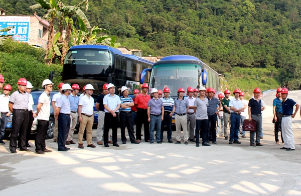 全体参会人员在参观G323百色至泮水公路项目现场标准化施工建设情况并在现场作了交流后,在百色市召开路网项目标准化现场会暨旱季施工动员会。会上,各参建单位代表作了汇报发言,集团公司董事长朱坚和各对参建单位在路网项目建设方面所取得的优异成绩表示肯定。