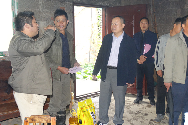 在乐业县逻西乡,唐咸秋总经理来到集团公司扶贫联系点中停村,开展走访慰问、扶贫工作调研活动。在与驻村第一书记、村两委干部、村民代表、贫困户代表座谈时,唐咸秋总经理表示集团公司将进一步加大精准帮扶工作力度,支持中停村集体经济发展,帮助改善群众交通出行条件。扶贫要先扶志,驻村“第一书记”要在思想教育上加大帮扶力度。座谈会后举行了捐赠仪式,唐咸秋同志代表集团公司向中停村捐款3万元,用于村集体经济(冰脆李种植基地)建设发展项目,并捐赠了1台打印机,同时向贫困户捐赠慰问品和慰问金,给贫困村送去温暖和关怀。