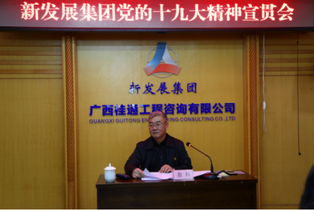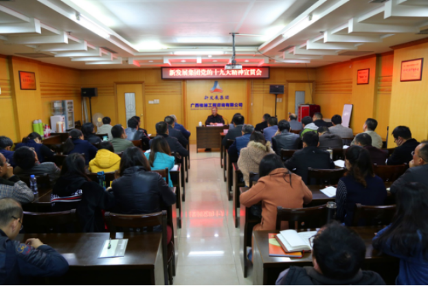 为使党的十九大精神深入基层、深入人心,11月27日,集团公司纪委书记翁科到桂通公司宣讲党的十九大精神。桂通公司总部全体人员、分公司、南宁周边项目员工参加学习。