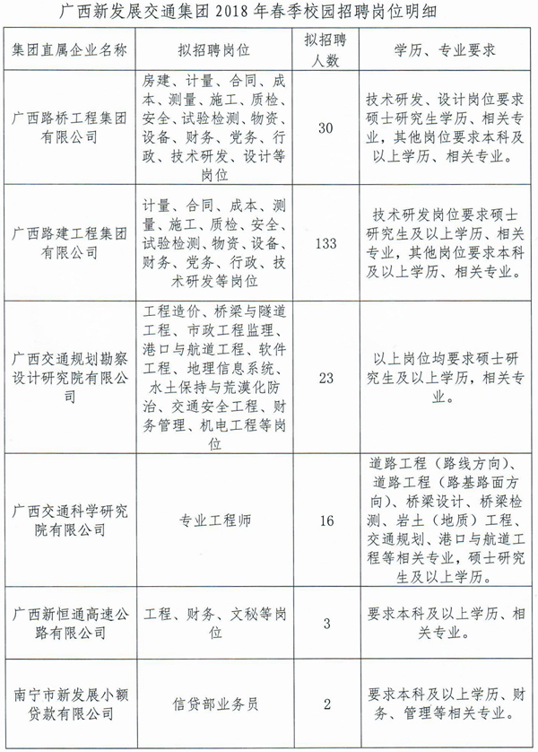 广西新发展交通集团2018年春季校园招聘宣讲会时间及地点安排: