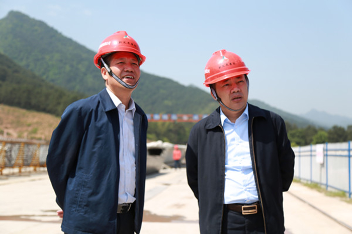 图五:集团公司党委书记、董事长朱坚和(左)与贺州市副市长陈翼明(右)在施工现场调研
