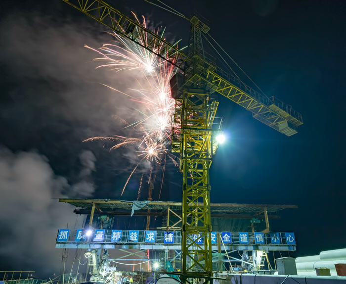 2014年10月14日,项目开始搭设施工栈桥,正式开始攻坚战;2018年1月26日,2#主桥顺利合龙,合龙精度达到毫米级。