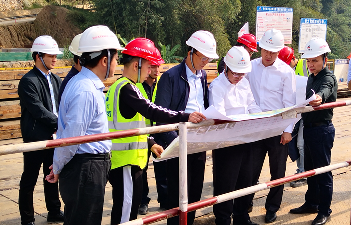 李定伦一行到红水河特大桥一线施工现场与建设人员深入沟通交流,详细了解项目进展情况,听取当前项目建设存在的重点难点,对项目建设的总体规划和方案提出意见,并要求指挥部和各参建单位齐心协力、科学谋划布局,认真研究可行性方案,落实建设责任,严把质量安全关,确保红水河特大桥项目建设高效、扎实、快速推进。