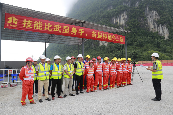 9月10日—11日,自治区企事业工会和北投集团工会共同联合举办“当好主人翁 建功新时代”庆祝新中国成立70周年“北投工匠”职业技能竞赛。竞赛由新发展集团、罗城县人民政府承办,赛场设于正在建设中的融水至河池高速公路。活动吸引了北投集团高速公路建设项目的10个参建单位共132名基层作业人员同台竞技。